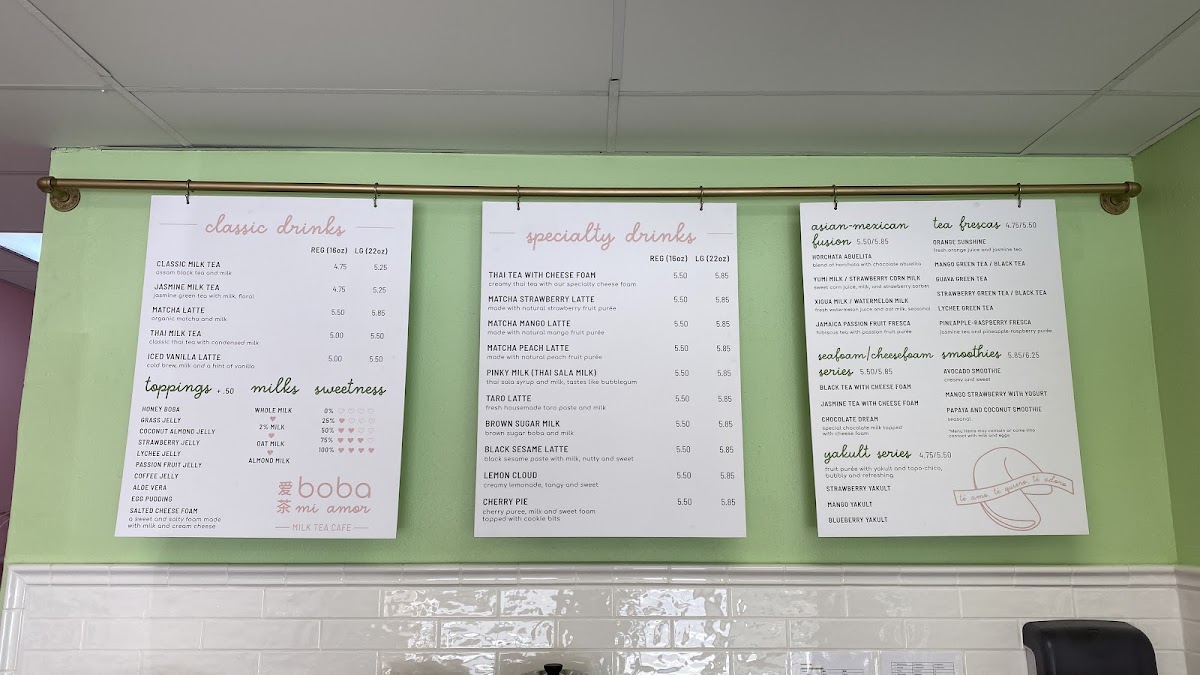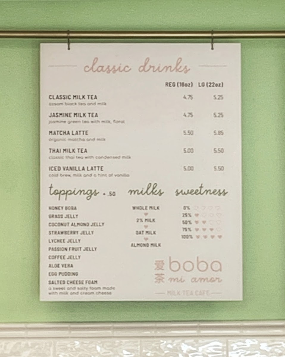 Boba Mi Amor Menu